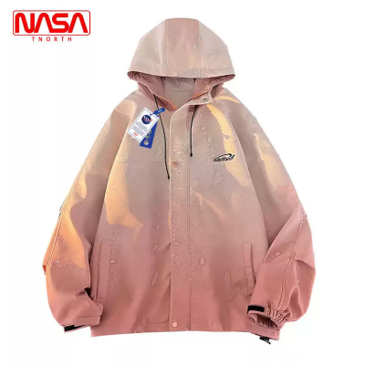 NASA联名渐变色冲锋衣女春秋季新款防水连帽夹克情侣美式宽松外套